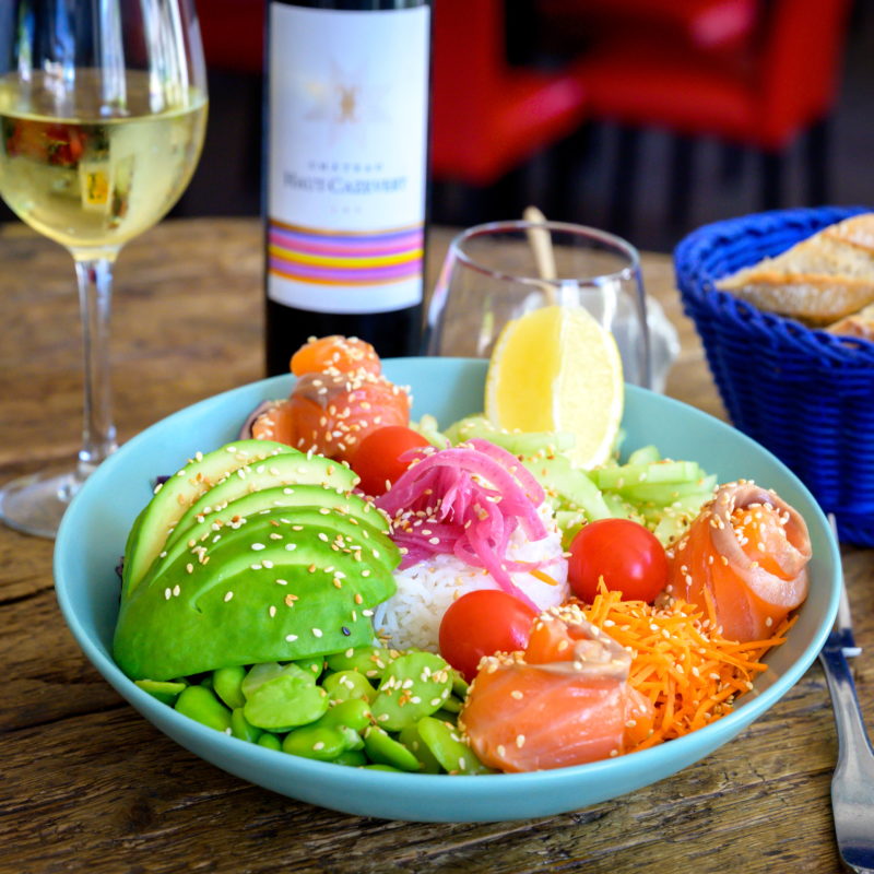 Nous avons également une sélection de salades rafraîchissantes, de poke bowls exotiques et de desserts à tomber par terre.